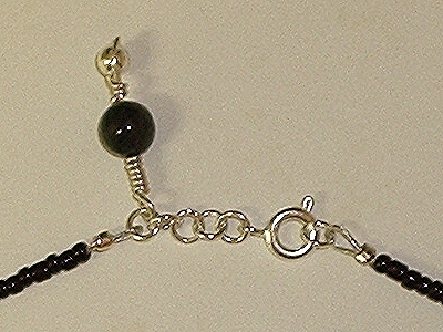 closes with a spring ring. It features a wire wrapped Bloodstone